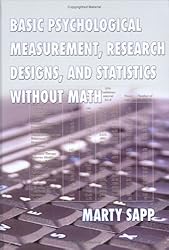 (More customer reviews)Basic Psychological Measurement, Research Designs, and Statistics Without Math is designed to give students and researchers the confidence to understand issues like reliability and validity through calculator and statistical packages such as Microsoft Excel, SPSS, SAS, and EQS. This text provides a modern treatment of measurement, research designs, and statistics. In addition, the assumptions of each statistic are discussed along with calculator and computer codes for calculations. This text emphasizes confidence intervals around reliability and validity indices and the testing specific hypotheses for reliability and validity indices, in contrast to the typical null hypothesis of zero. For school situations, this text covers nested designs, both the univariate and multivariate case. Effects sizes are covered in detail along with the computer codes for calculating confidence intervals around effect sizes. Moreover, this text covers 16 major correlations. Finally, this text covers the most common univariate and multivariate statistics, especial the multivariate approaches to repeated measures.